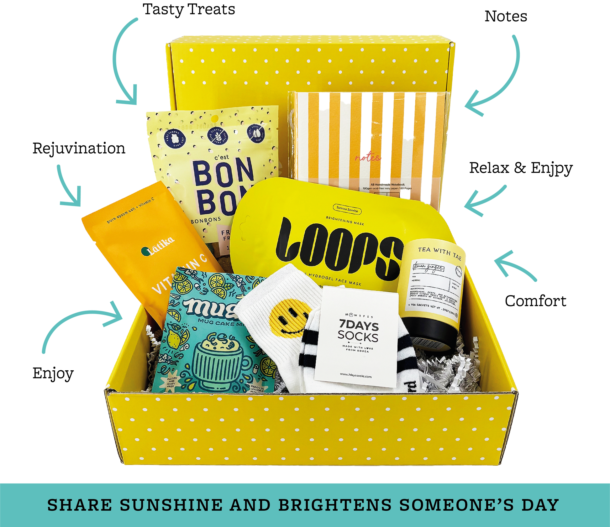 Introducing the Sunshine Crate – your personal ray of happiness in a box! Packed with all things bright and happy, this curated crate is like a hug from the sun. Inside, you'll find a delightful mix of goodies guaranteed to put a smile on anyone's face.